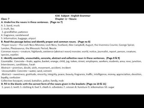Icse Class 7 English Grammar Chapter 1 Nouns Answer Key Youtube